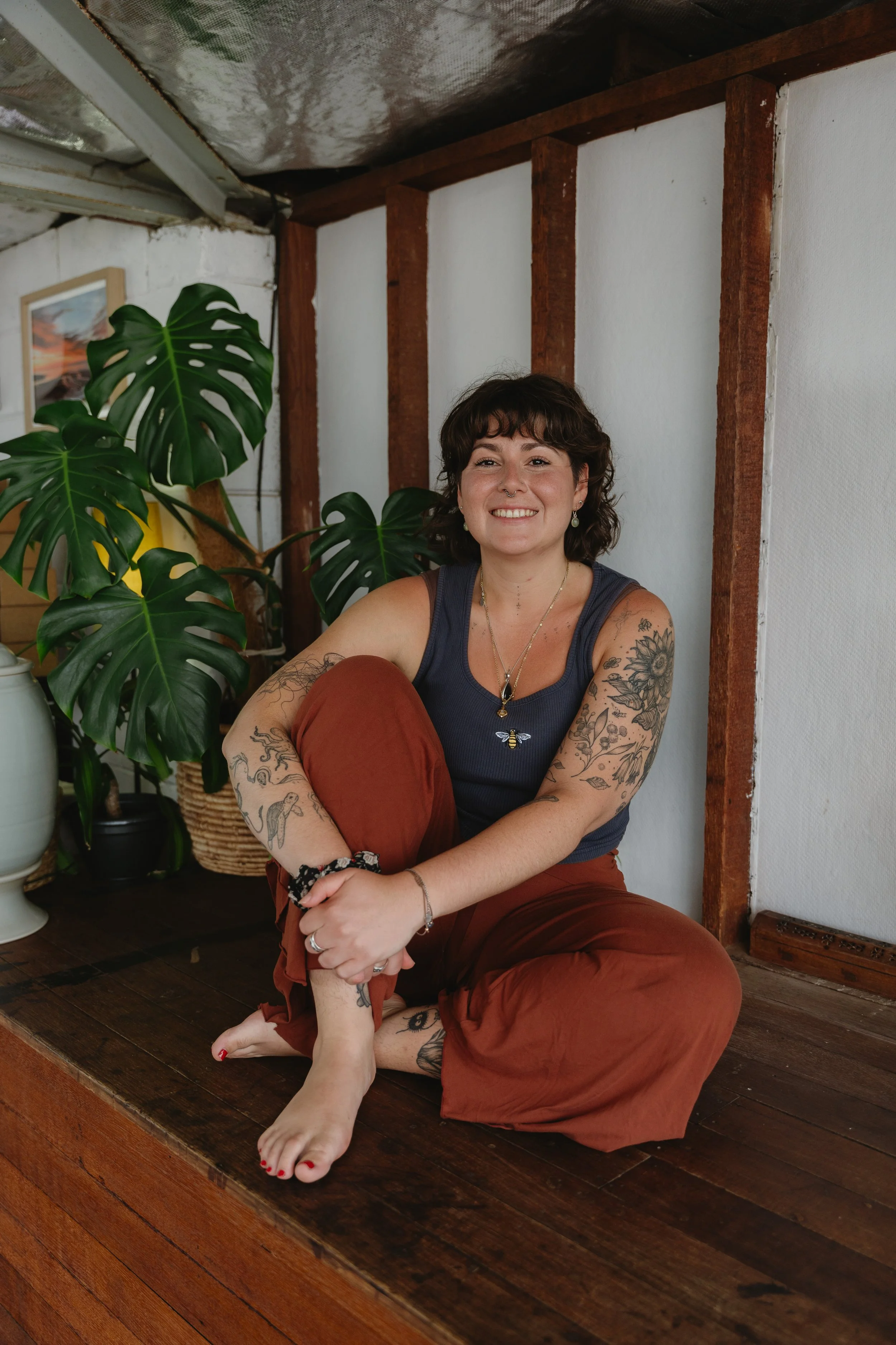 Her curiosity about the human body led her to study naturopathy and nutrition at Endeavour College. However, when COVID hit, she realised she wasn’t suited to a desk job—she needed movement to feel fulfilled. She graduated with a Diploma in Nutrition and soon after enrolled in her 200-hour Vinyasa Teacher Training. More recently, she also completed a degree in Viticulture and Oenology, driven by her deep passion for working outdoors in nature and connecting with Mother Earth. Since completing her initial yoga training in 2020, Alicia has expanded her knowledge by studying Meditation, Yin, Nidra, Sound Healing, Reiki, and Kids Yoga.